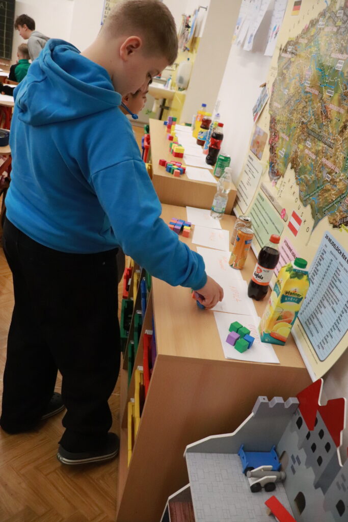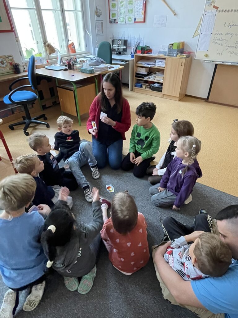 V anglické části projektového dne si žáci pomocí písniček, her, tance a výtvarných aktivit rozšířili slovní zásobu. Starší si dokonce vytvořili portrét ve stylu malíře Giuseppe Arcimbolda – složený z ovoce a zeleniny – a popisovali ho anglicky.