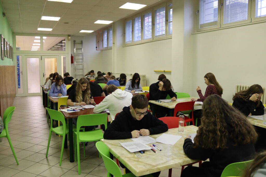 Všichni deváťáci si vyzkoušeli kompletní proces – od odevzdání veškeré elektroniky před vstupem do místnosti, přes správný zápis do záznamového archu, až po dodržení všech pravidel včetně použití pouze povolených pomůcek. Velký důraz jsme kladli i na práci s časem, která bývá u testů často klíčová. Žáci tak měli možnost zjistit, jak rychle a efektivně pracují, kde se mohou zlepšit a na co se ještě zaměřit při domácí přípravě.