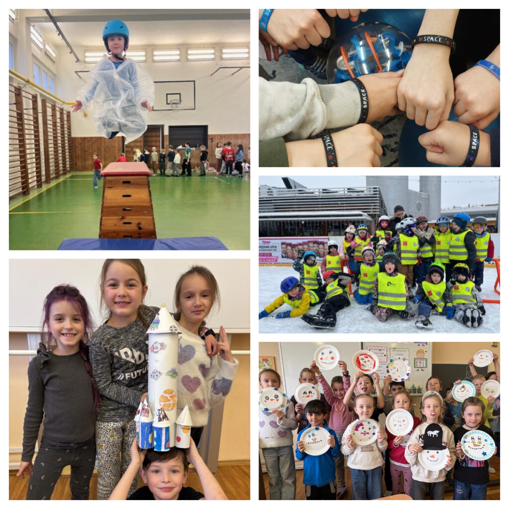 Nezůstali jsme ale jen u teorie. S velkým nadšením jsme pekli planety z těsta a vyráběli různá vesmírná tělesa, čímž jsme rozvíjeli nejen svou kreativitu, ale i znalosti o sluneční soustavě a vesmíru jako takovém. Velkým zpestřením projektu byly také pohybové aktivity – bowling a bruslení, které jsme brali jako součást fyzické přípravy kosmonautů.