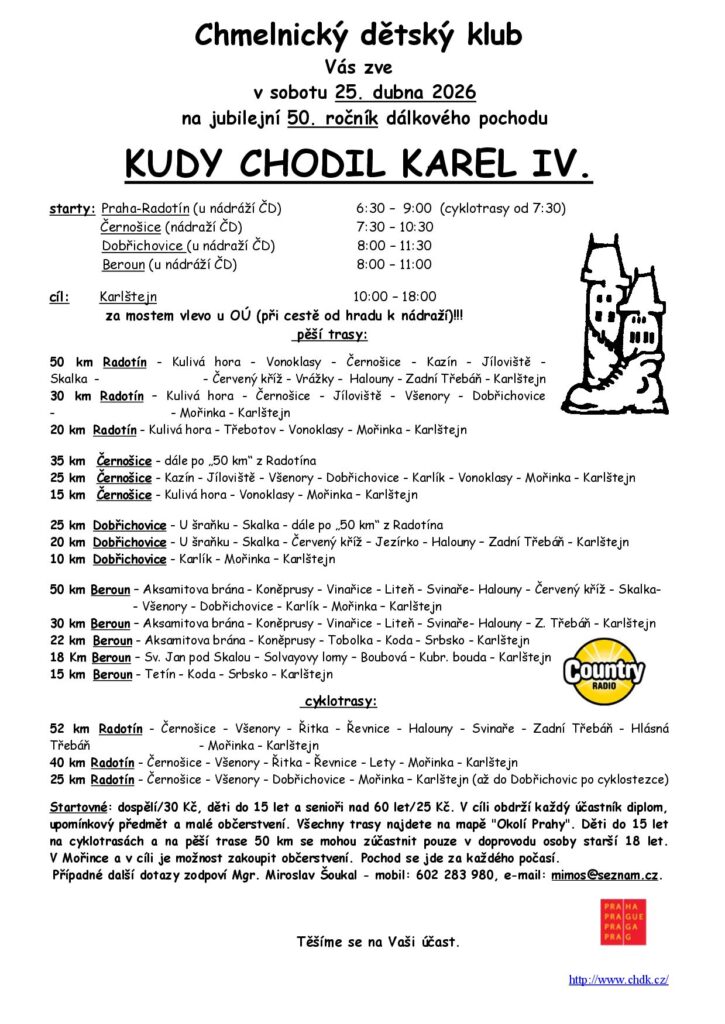 Veškeré informace o akci naleznete zde: https://www.chdk.cz/kudy-chodil-karel-iv/
