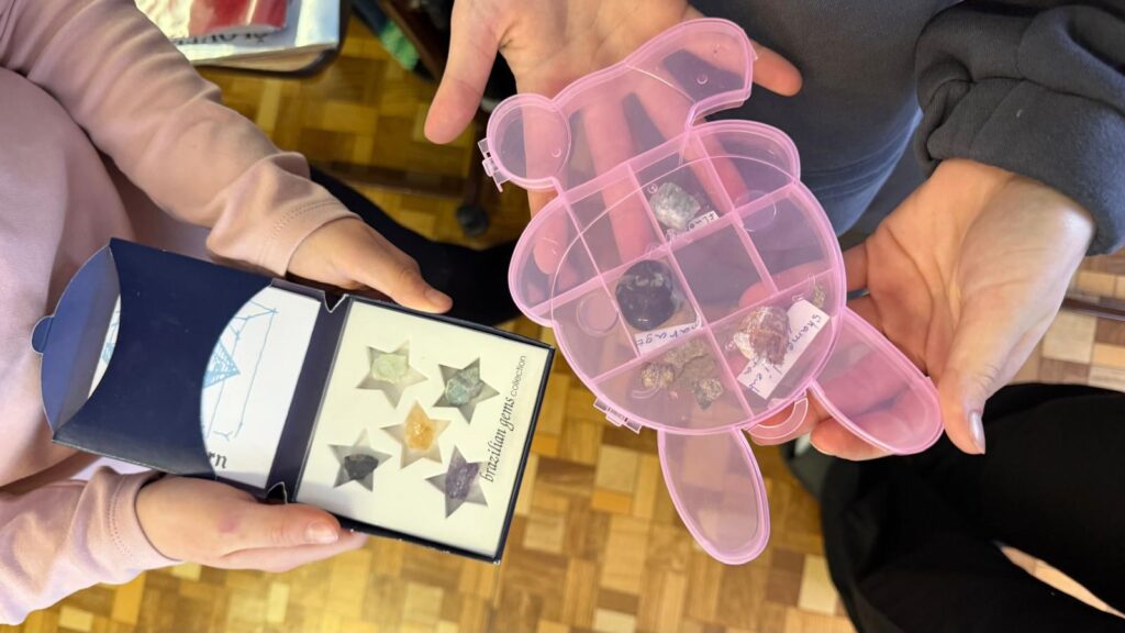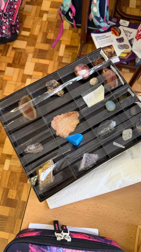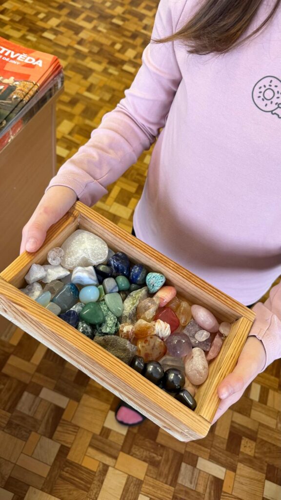 Ve svých sbírkách představila například jaspis, ametyst, achát, křišťál, granát, tygří oko či růženín a spoustu dalších. Spolužáci tak měli jedinečnou příležitost nahlédnout do malých „soukromých sbírek“ a dozvědět se spoustu nového přímo od svých kamarádek.