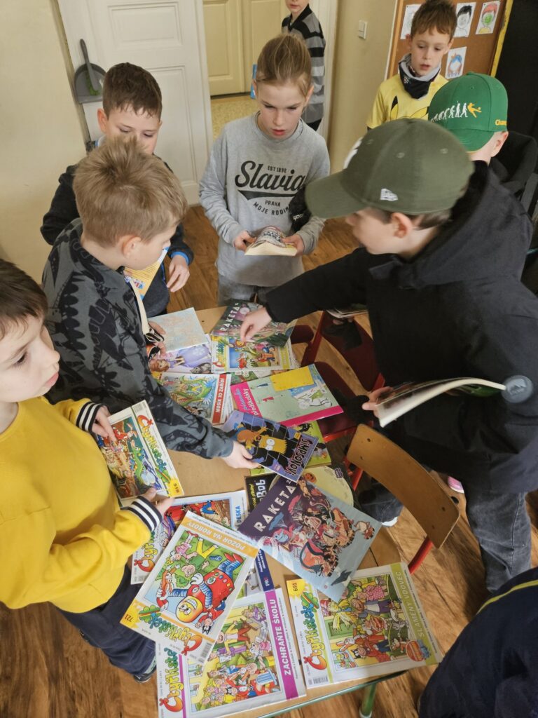 Na konci měsíce pak přišla ta nejzábavnější část – samotná výměna knih. Děti si pečlivě prohlížely nabídku, radily se mezi sebou, doporučovaly si oblíbené tituly a s nadšením vybíraly příběhy, které je oslovily.