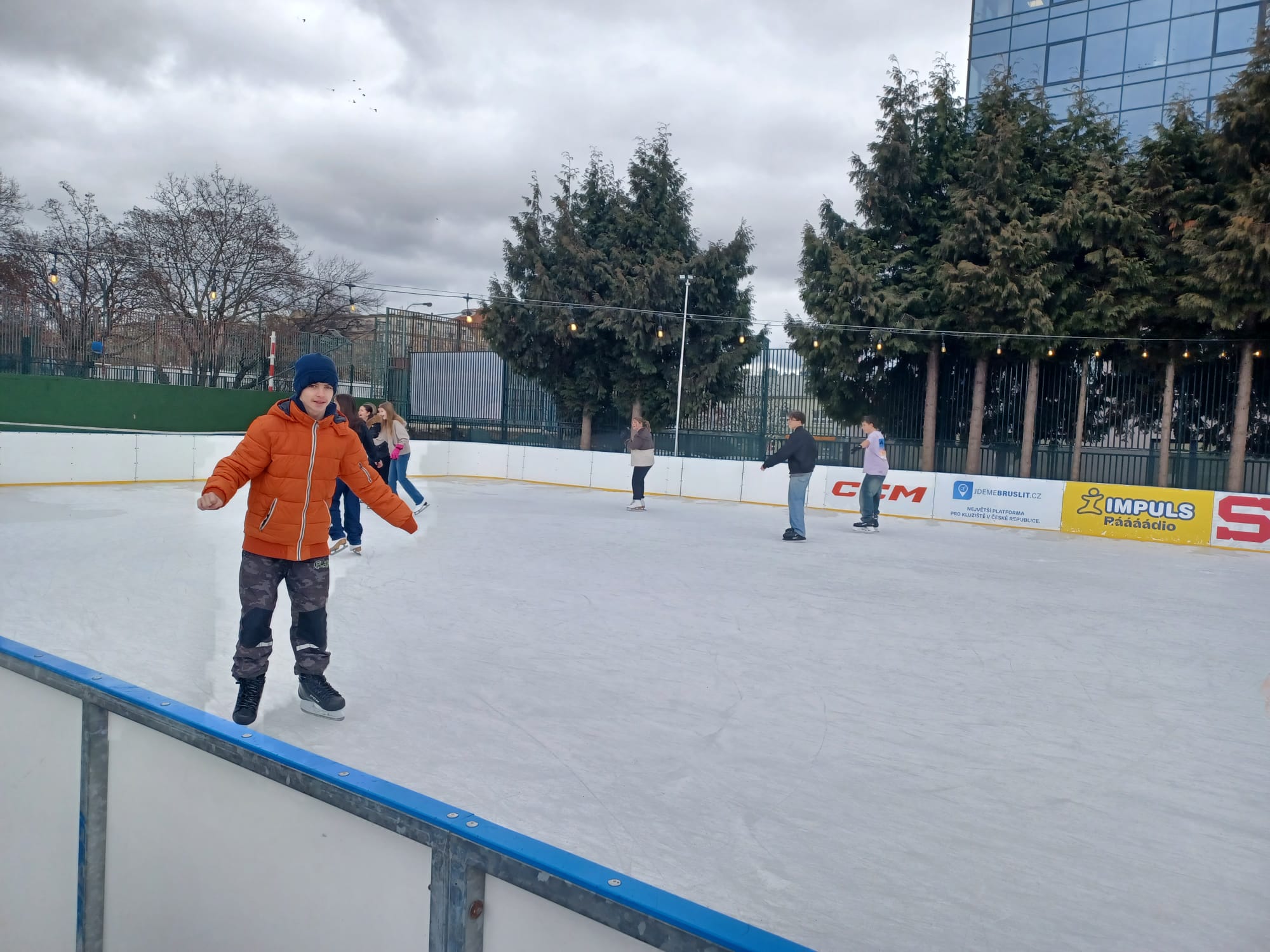 Třída 8.A si nedávno užila společný sportovní zážitek na ledě. Někteří žáci stáli na bruslích úplně poprvé, a tak byly začátky opatrné a plné nejistých